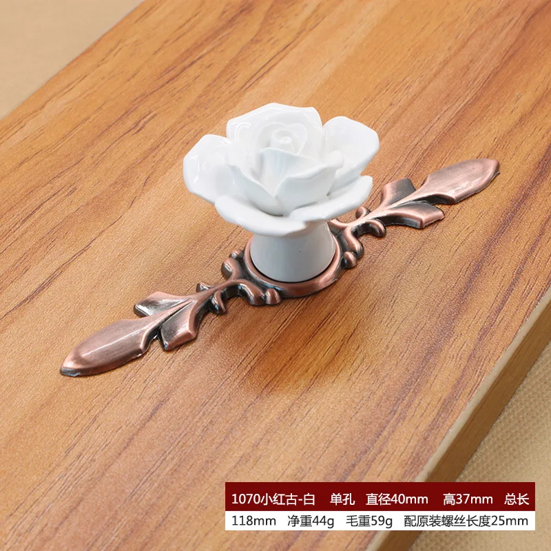 JAYA European-style ceramics antique copper rose single cabinet hole furniture handle