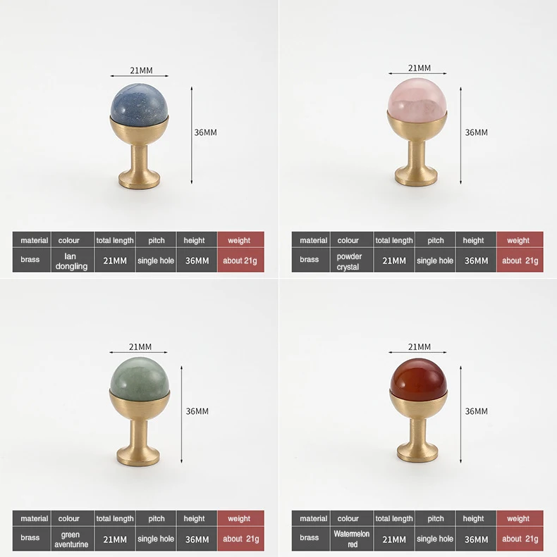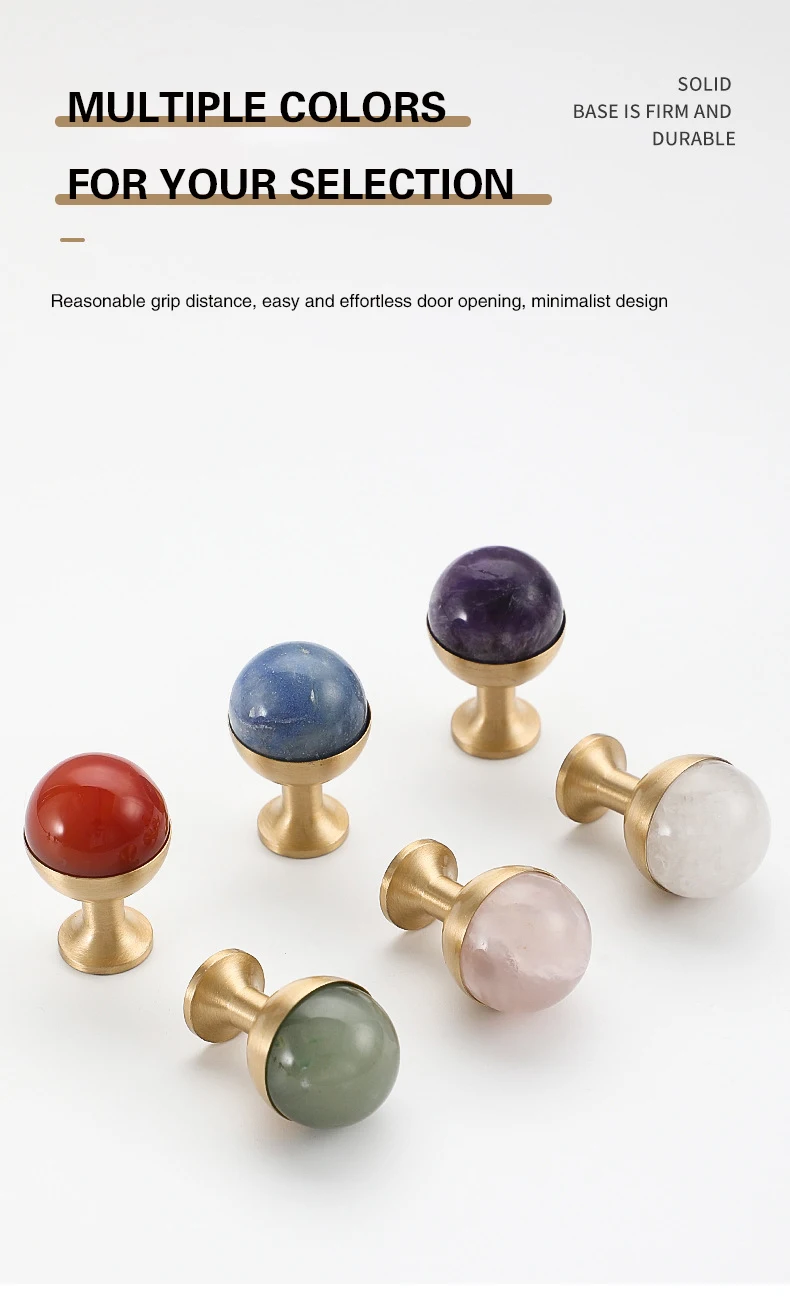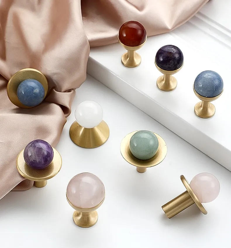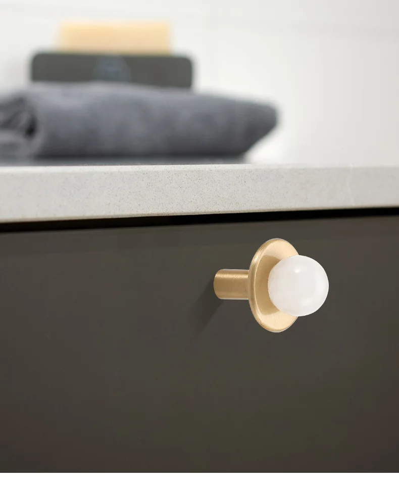 JAYA Modern Single Hole Brass Door Handle Wholesale Natural Stone Brass Knobs for Wine Cabinet Shoe Cabinet Small Drawer Knobs