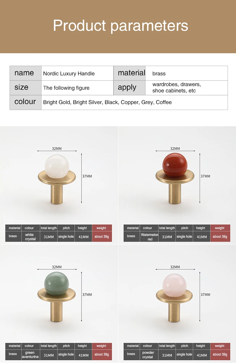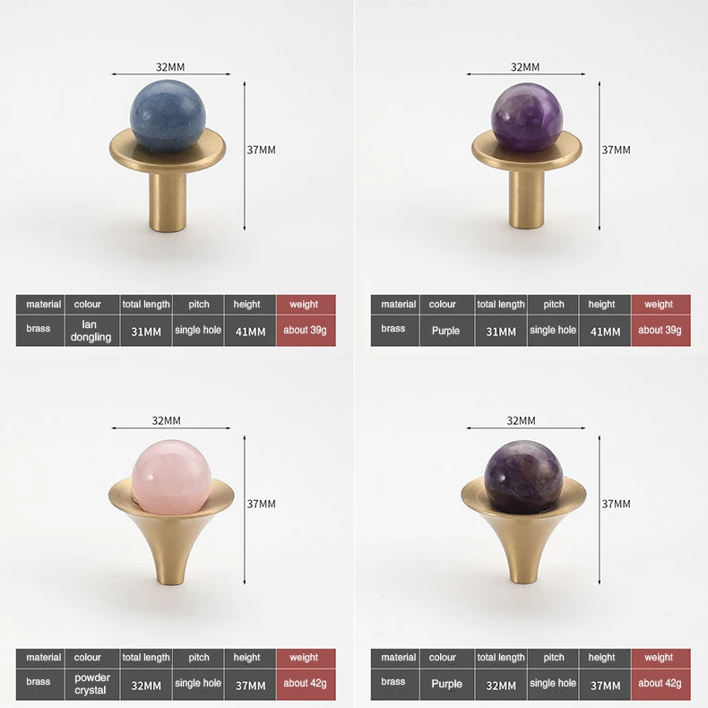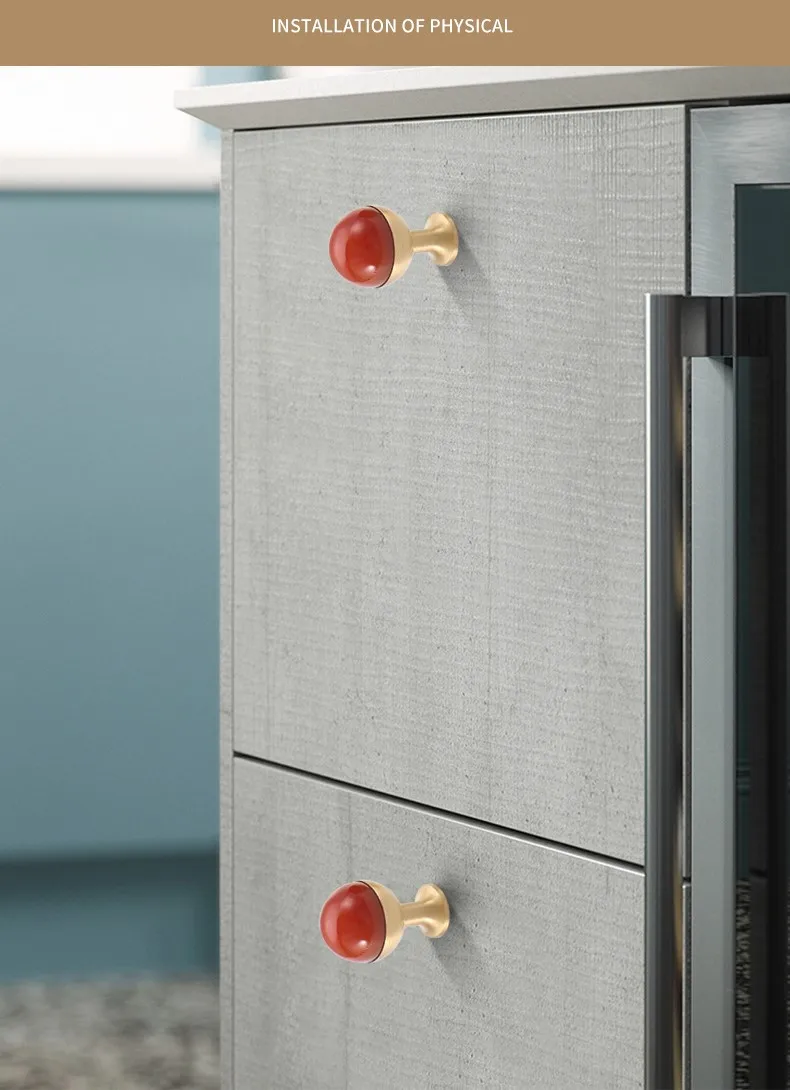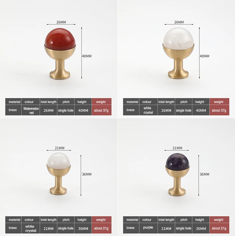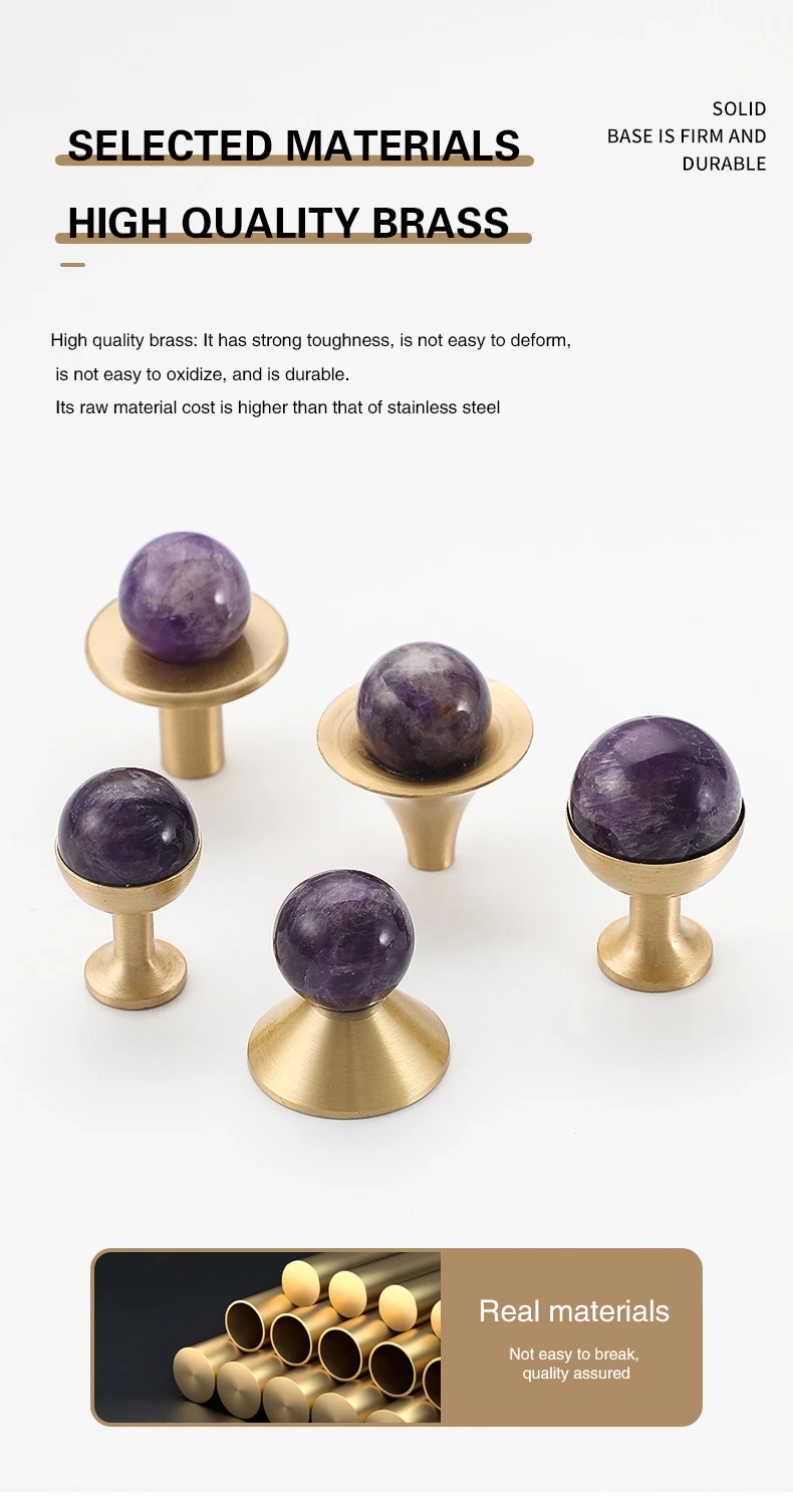 JAYA Modern Single Hole Brass Door Handle Wholesale Natural Stone Brass Knobs for Wine Cabinet Shoe Cabinet Small Drawer Knobs