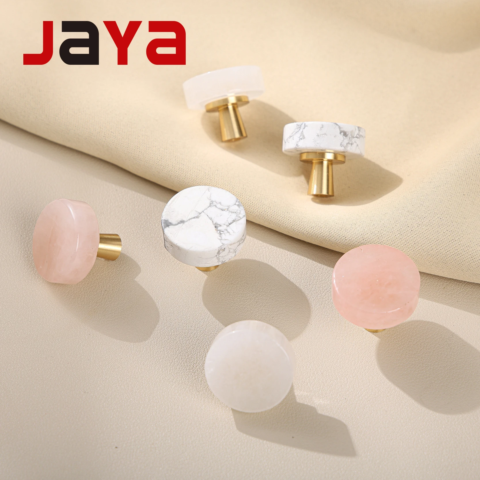 JAYA Natural Door Knob Stone Marble Brass Cabinet Drawer Knobs Cupboard Dresser Drawer Pulls Handles Knobs Furniture Door Handle