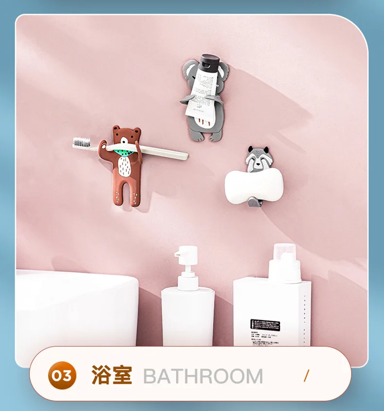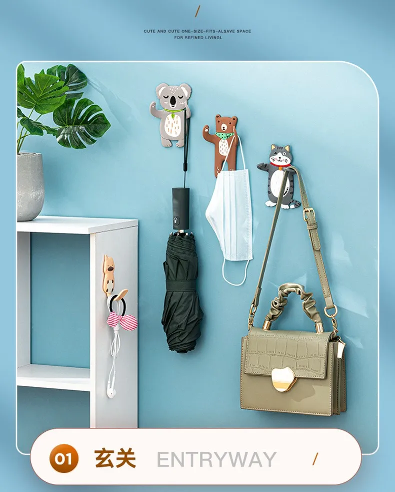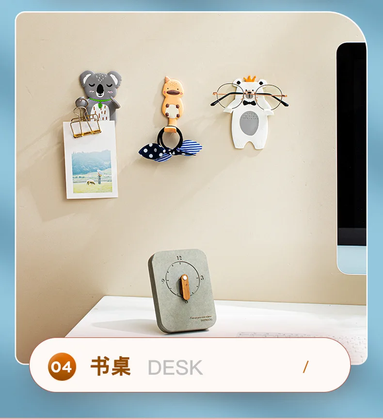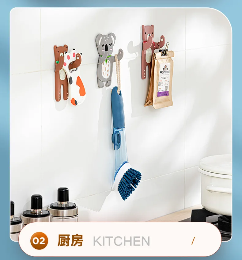 JAYA No-punch Rag Plug Cartoon Animal Hook Fridge Sticker Kitchen Bathroom Creative Towel Rack Wall Hanging Key Hooks