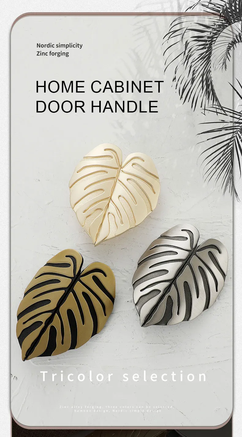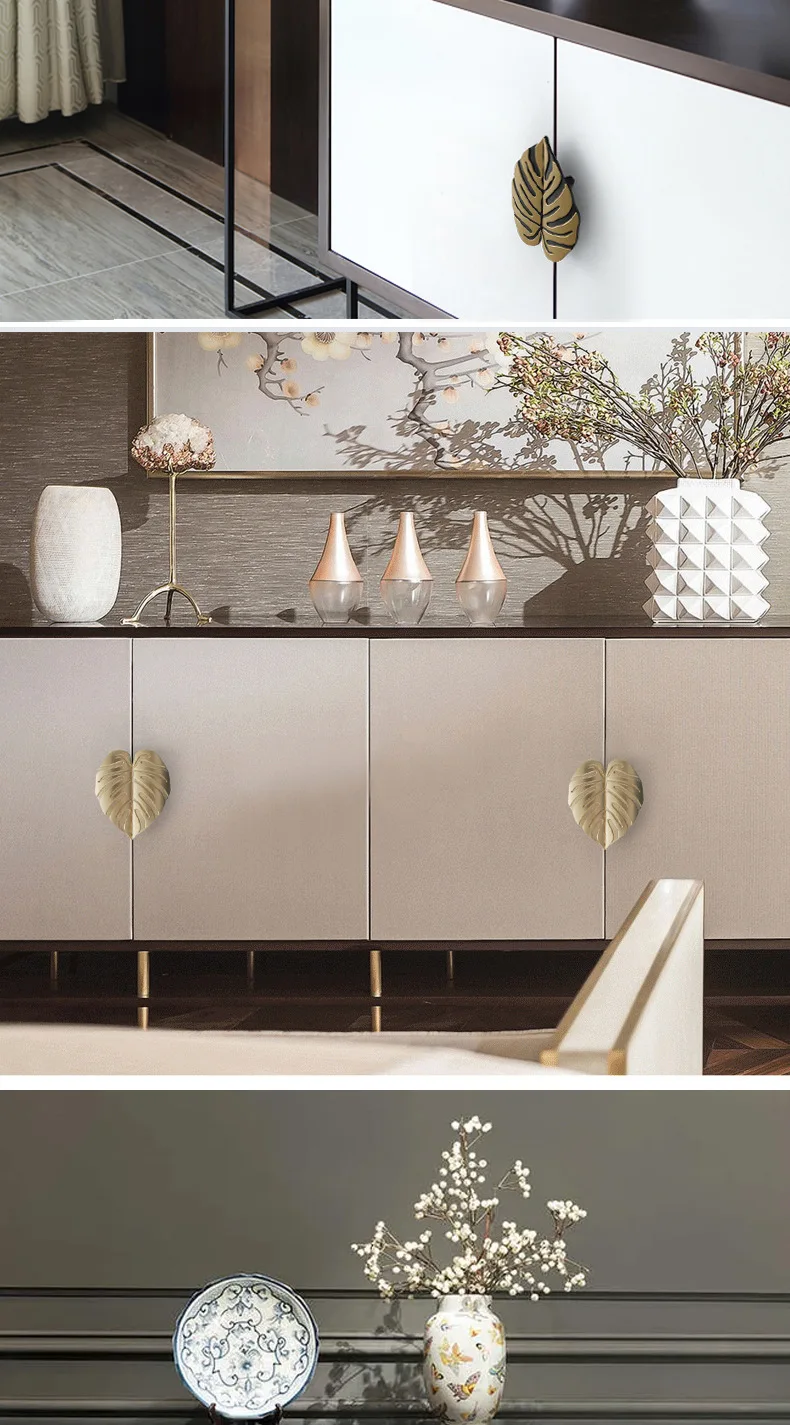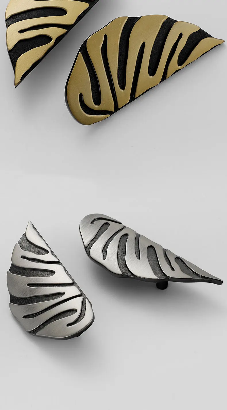 JAYA Nordic Personality Creative Leaf-shaped Paired Handle Antique Copper Furniture Gold Cabinet Handle
