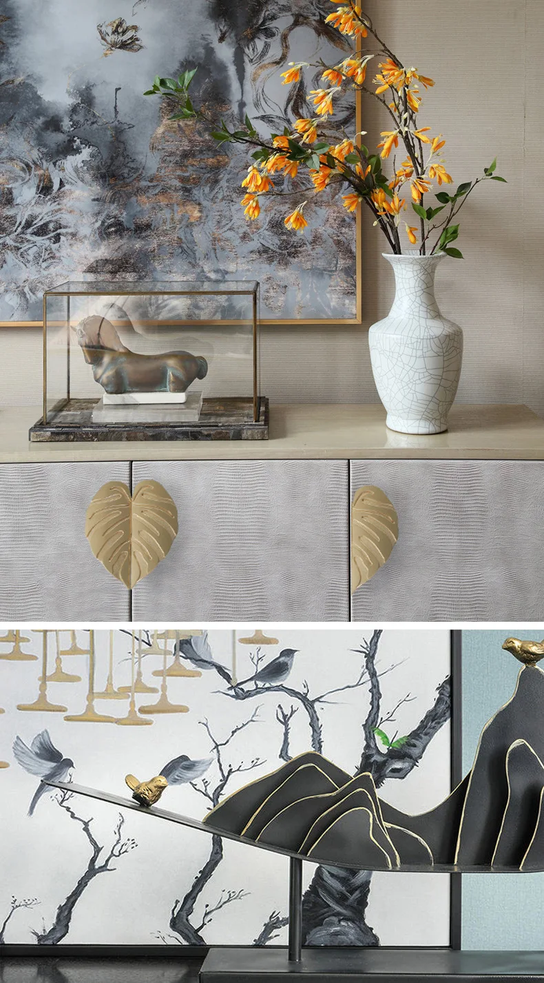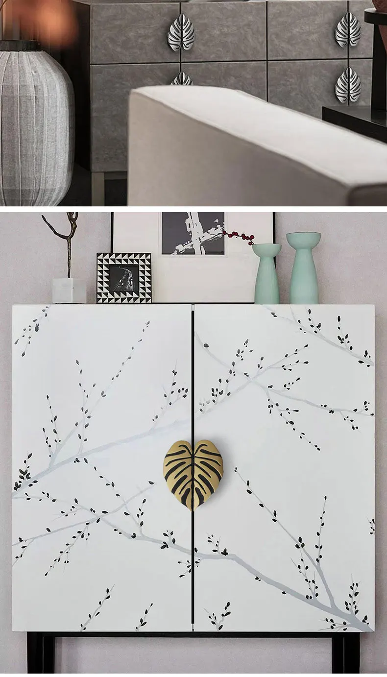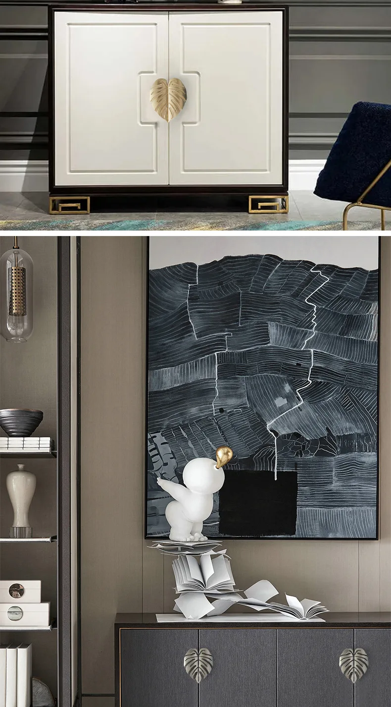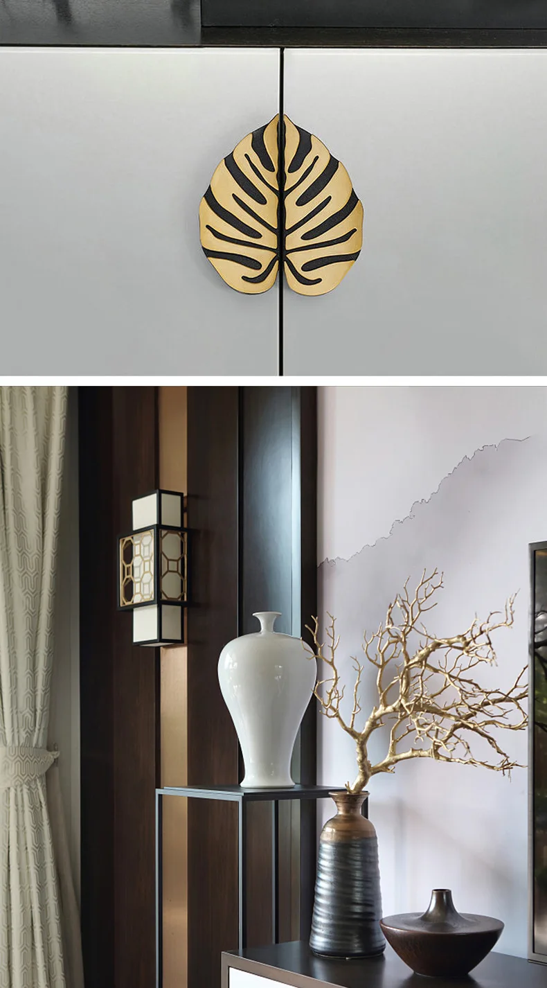 JAYA Nordic Personality Creative Leaf-shaped Paired Handle Antique Copper Furniture Gold Cabinet Handle