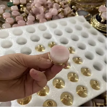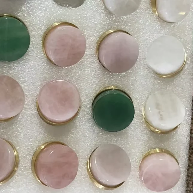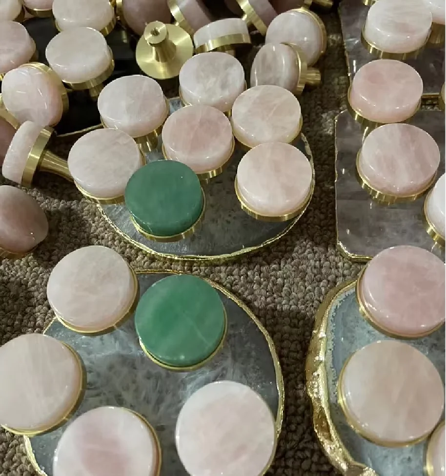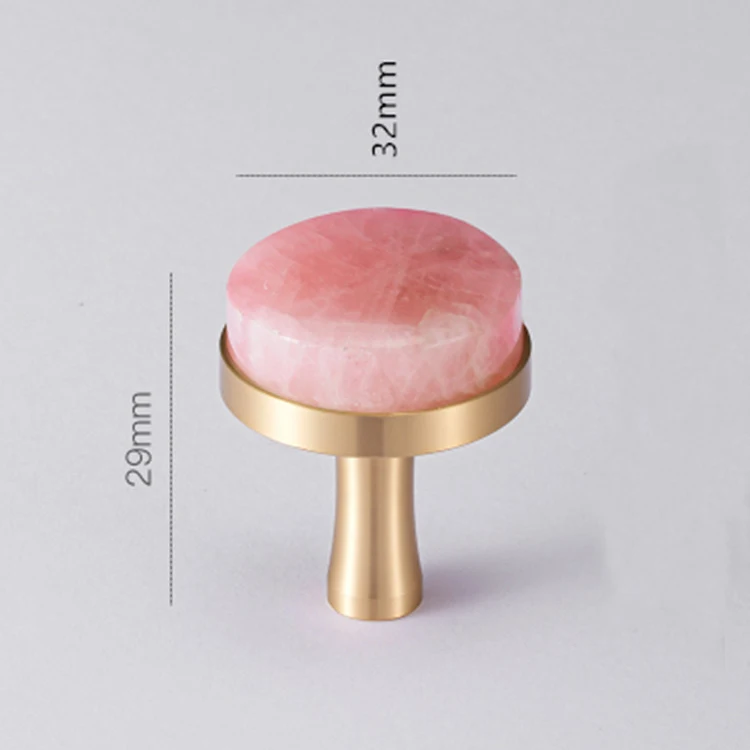 JAYA Pink Crystal Handle Knobs Single Hole Natural Stone & Brass Base Furniture Wine Cabinet Drawer Door Handle Knobs