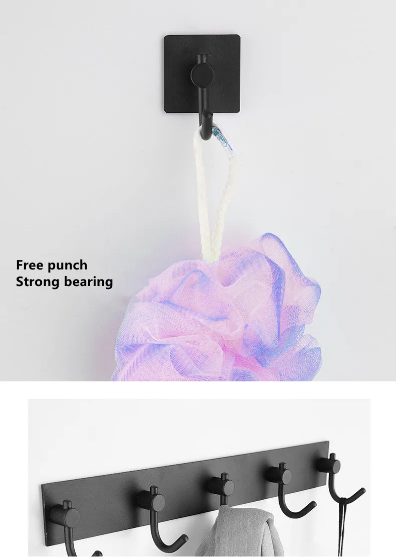JAYA Punch-Free Wall Hooks Stainless Steel Thumb Hanger Hook Gunmetal Gray Adhesive Hook for Bathroom Shower and Storage Shelf
