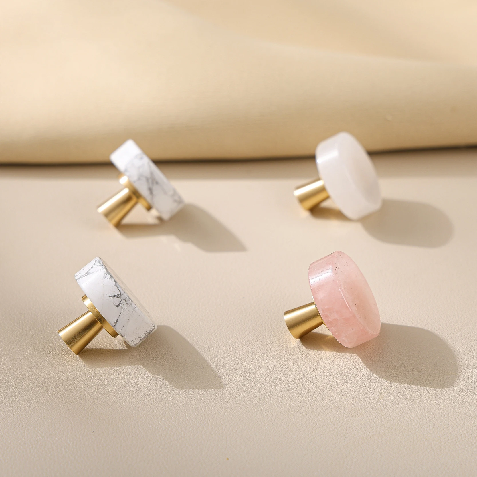 JAYA White Single Hole Small Handle Natural Stone Brass Furniture Wine Cabinet Drawer Door Handle Modern for Living Room