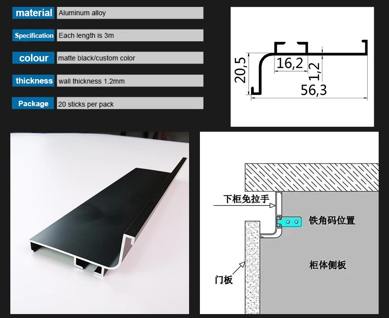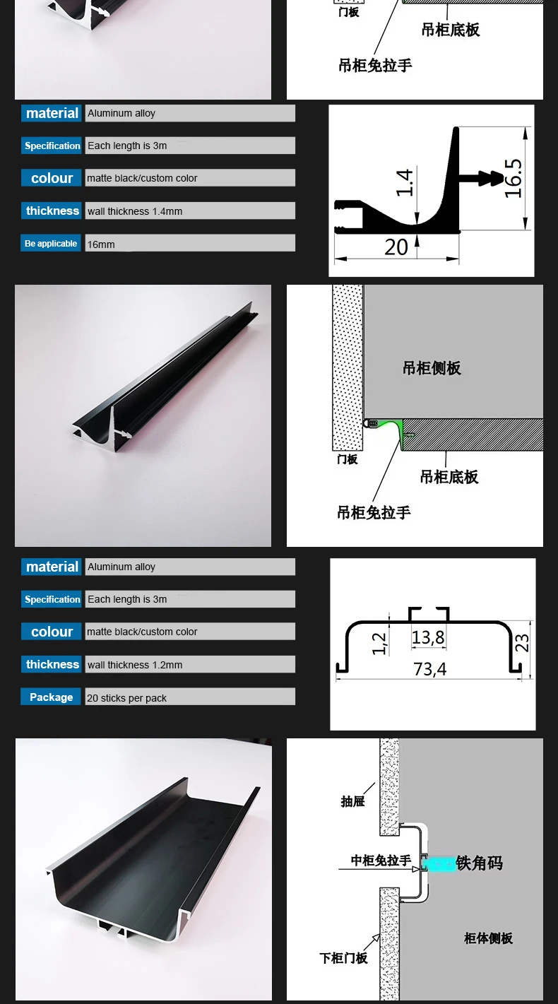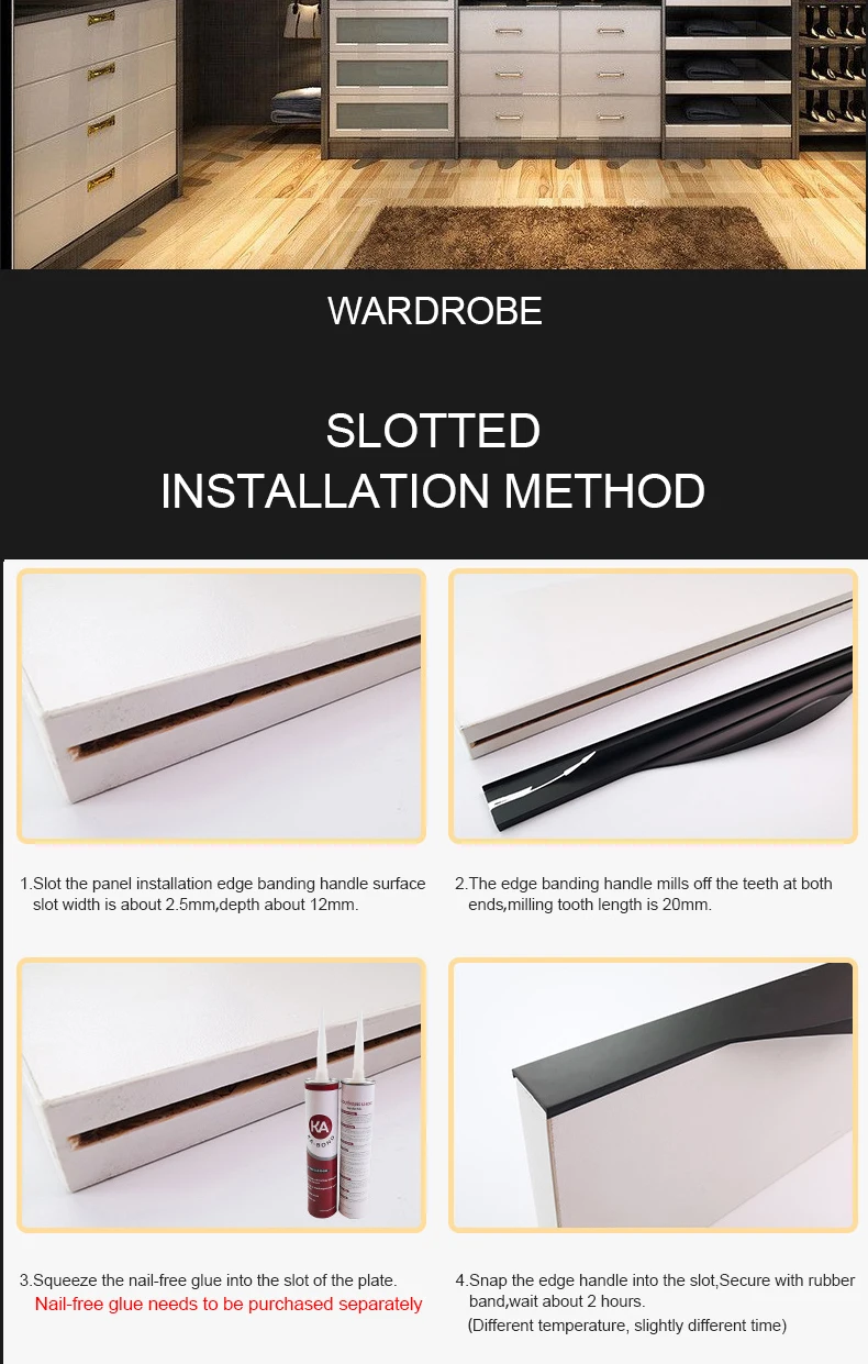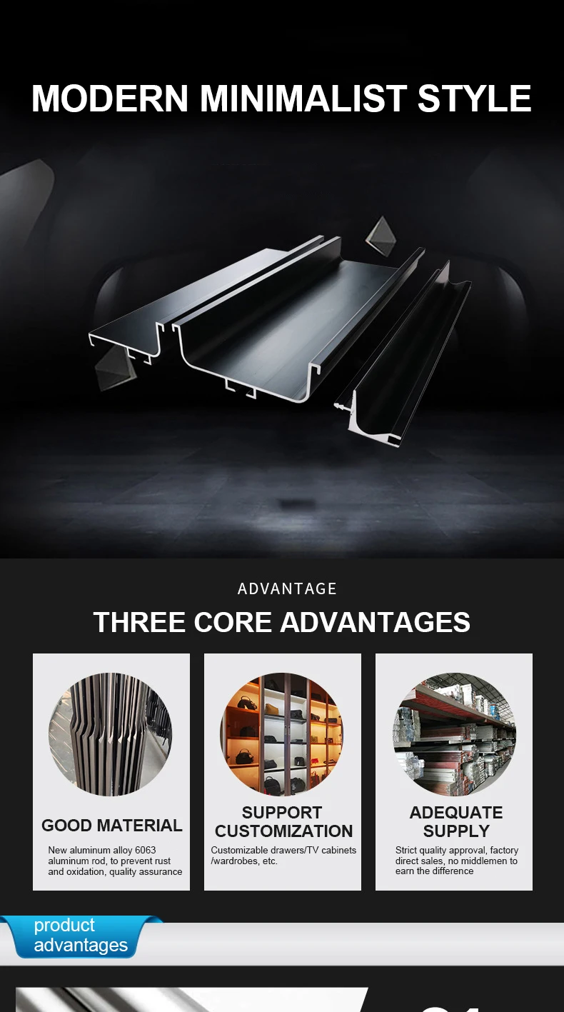 JAYA Wardrobe Cabinet Handle Free Middle Cabinet Free American Wardrobe Handle Furniture Drawer Aluminum Alloy Black Door Handle