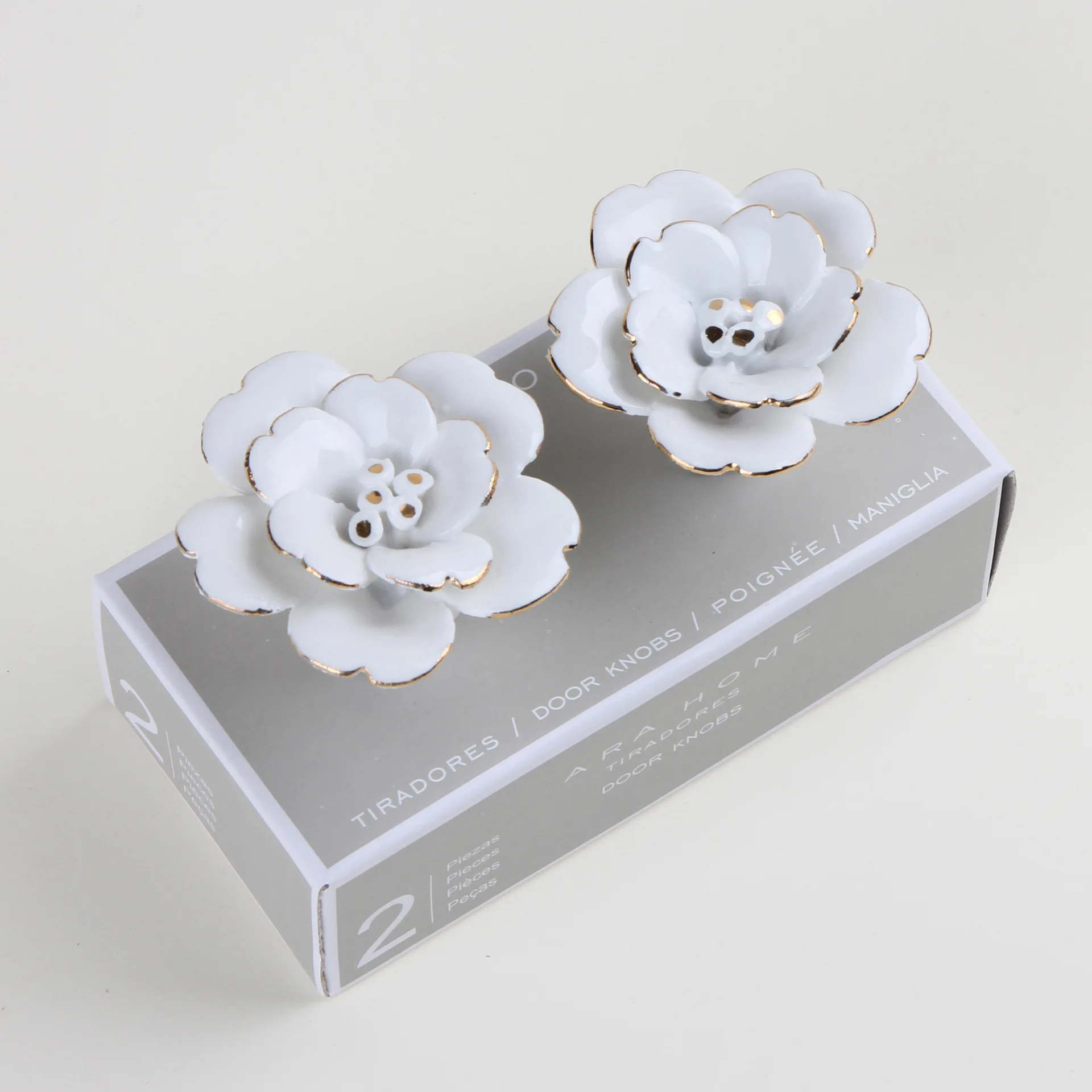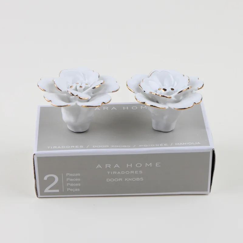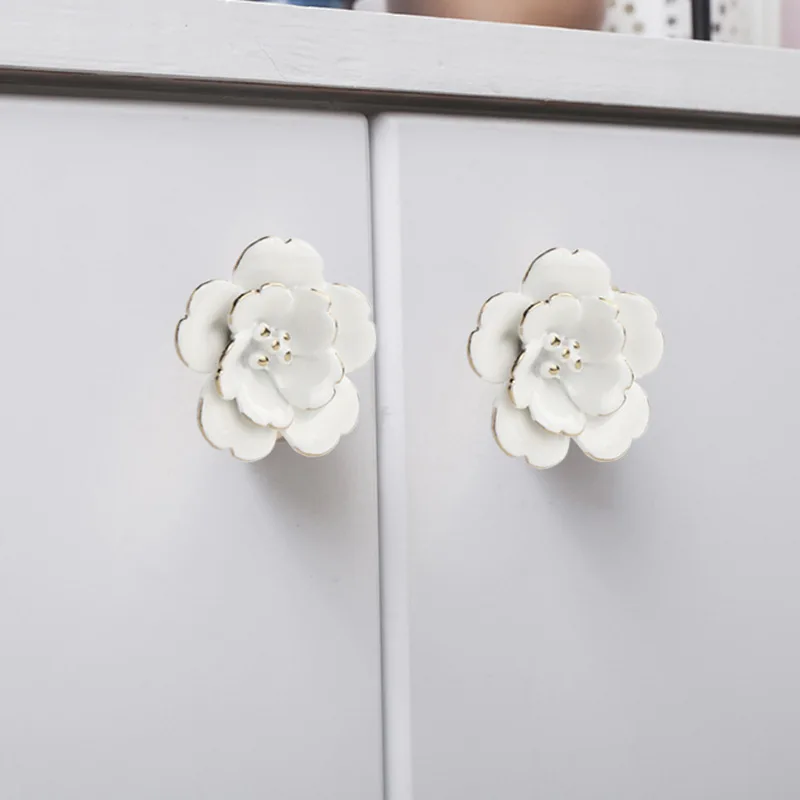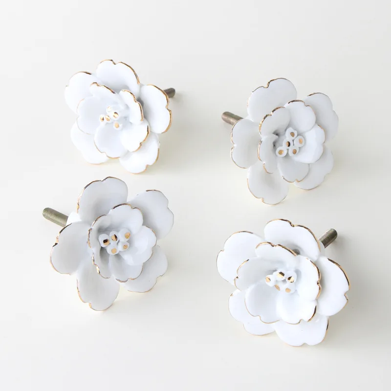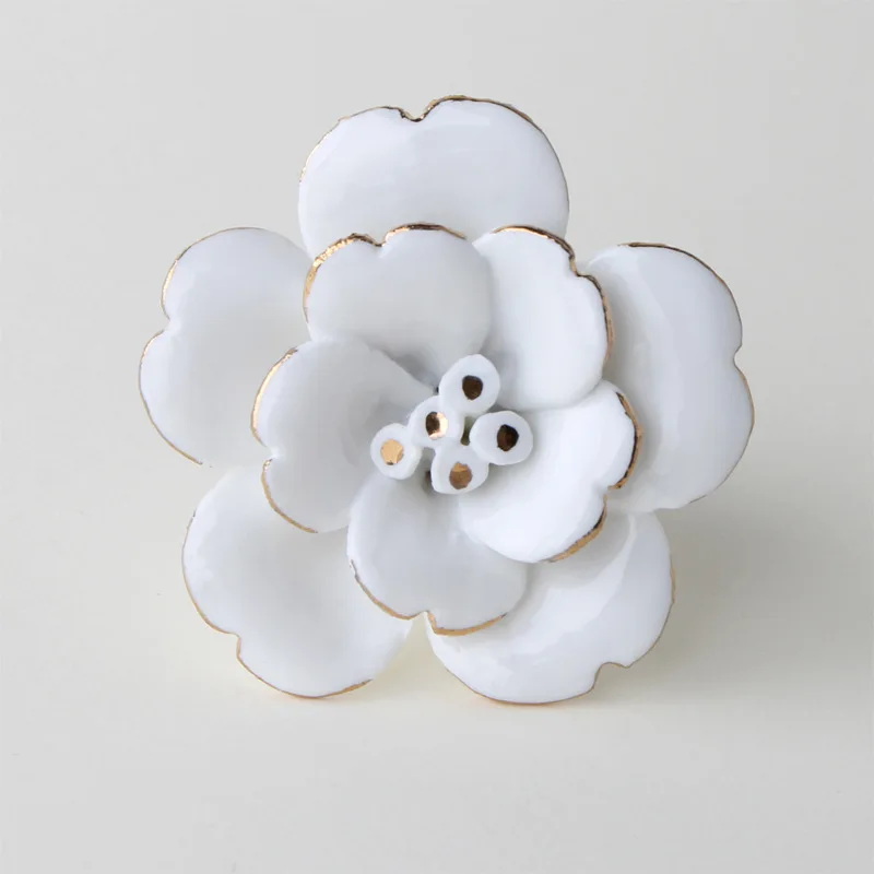 JAYA White Camellia Ceramic Handle Wall Wall Decoration Hand Painted Gold Wardrobe Kitchen Cabinet Furniture Cabinet Door Handle